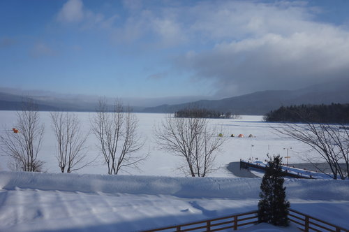 打開窗戶看看外頭的阿寒湖景色如何